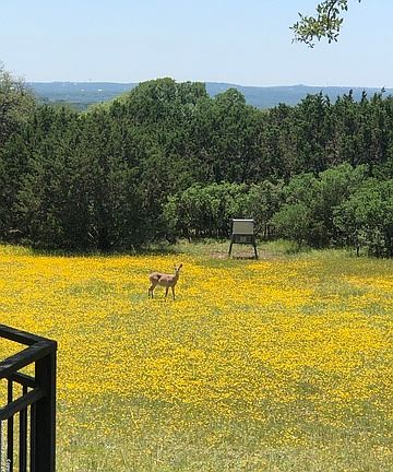 Relaxed Hill Country living can be yours in this single story level home set on 3 acres with a beautiful view. Many custom features include... Custom pecan wood floors, doors and cabinetry; rattlesnake inlay in cut rock; large deck with windows and doors all open in the back (perfect for entertaining); covered front porch and an amazing fire pit with incredible views. The back is completely fenced with many mature oaks trees. 3 car garage. Great neighborhood amenities! Listing agent is related to owner.