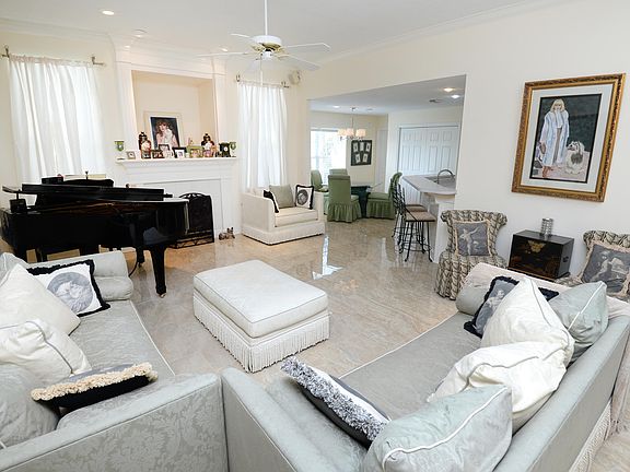 - Interior: Ceiling Crwn Molding, Floor Hardwood, Fireplace, Ceiling Raised, Floor Tile, Split Bedroom, Window Treatment All, Breakfast Bar, Floor Vinyl, Built-In Bookcases, Security System, Ceiling Tray/Cofferd, Window Bay, Pull Down Stairs