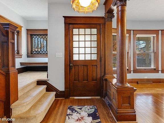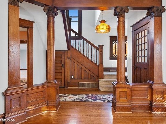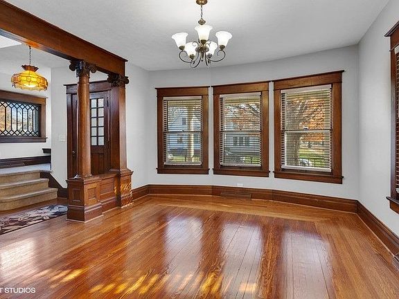This turn of the century charmer has been impeccably maintained and tastefully updated while preserving and highlighting the unique features of yesteryear: leaded windows, pristine pocket doors, custom trim & woodwork, butler's pantry and built-ins as well as the dual staircases. The main level features a GRAND entry, a formal living room, a formal dining room, an updated kitchen with SS appliances, granite counters, custom backsplash and plenty of storage, a Parlor/den with access to the 3/4 bath, a HUGE rec room w/ ornamental fireplace w/ sliders to the back deck. Upstairs you will find 3 LARGE bedrooms (master bedroom has an incredibly large walk in closet/dressing room) and a beautifully rehabbed full bathroom. There is a dry Michigan style basement with laundry hook-ups. The large backyard is perfectly private and nicely landscaped. There is also a 2 car detached garage. This one was a labor of love and it shows. Ask your agent for a list of features & upgrades (new roof)!