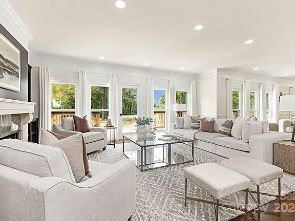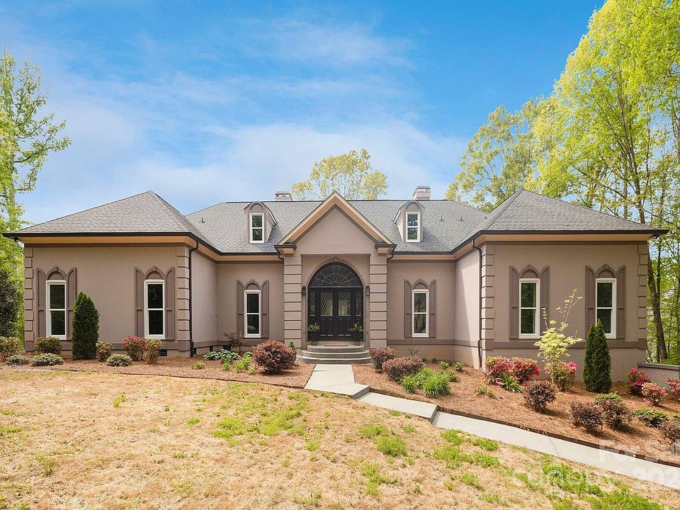 Indulge in ultimate luxury with this sprawling, open concept home located at the end of a cul-de-sac (and on the 18th tee!). The entire home has been updated in a high end fashion- every detail was thoughtfully curated for the most discerning buyer. The grand entryway leads to the living + dining room, each with their own fireplace, oversized windows, and French doors that highlight golf course views. Main level also contains a new, gourmet eat-in kitchen with a massive center island. Also on the main is an oversized primary suite w/sitting area, 3 additional ensuite bedrooms/bathrooms, and a custom laundry room. Upstairs hosts 2 add'l en suite bedrooms. Panoramic views + privacy on the expansive deck - true entertainers sanctuary. 3 car side garage. Home is loaded with storage space. Large .65 ac lot. Gated community just minutes to Charlotte with golf, tennis, swim & dining amenities available with club membership.