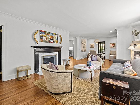 Beautifully renovated ranch on a spacious lot in Cotswold! Charm and custom upgrades throughout the house. This open-concept floorplan features a formal living room with fireplace, dining room & sunroom off to the side - perfect for an office, exercise room or flex space. The updated kitchen includes marble countertops, stainless steel appliances & a large island with bar seating. The kitchen opens into a den or sitting area with built-in bar. The entire floorplan has great flow for everyday living and entertaining. Great drop zone at back entrance and laundry closet off of the den. The primary suite with spa bathroom offers a peaceful retreat, situated at the back of the house overlooking the beautiful back yard. Two additional bedrooms share an updated second hall bathroom. Incredible outside living - enjoy the covered porch and a separate patio all overlooking the private, flat backyard. Carport parking and driveway provide for easy turnaround. Great outbuilding & storage shed.