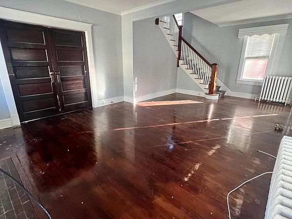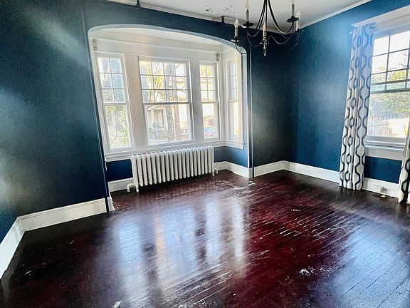 This home has tons of character. The living room has original hardwood floors, a brick fireplace, tall ceilings, and pocket doors that lead to the dining area. The updated kitchen has solid surface counters and tiled floors. An eat-in area and half-bathroom complete the main level. The second floor features three bedrooms with hardwood floors and a full bath with ceramic tile finishes. The third floor provides an additional bedroom also with hardwood flooring. The exterior offers a covered porch, a rear deck, a fenced yard, off-street parking, and a two-car detached garage.