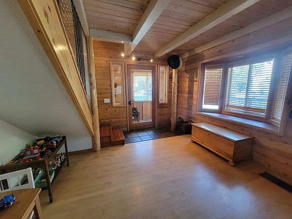 Centrally located 4-bedroom 3-bath mountain home. This charming 4-bedroom 3-bath home with wood floors throughout has plenty of natural sunlight and is located in the center of Mammoth Lakes. Entertain your family and friends in this great open living space as the living and kitchen areas flow together. Nestled on a flat lot with a mud room, lots of storage, parking and an oversized attached 2-car garage for your toys and gear. There is additional parking for your vehicles or an RV. Enjoy relaxing on the front porch or in your quiet, fenced, landscaped backyard with a garden-like setting, including Aspen, Pine, and Apple trees. The washer and dryer are located upstairs near the bedrooms and the downstairs guest bath offers its own shower. The guest room has plenty of natural sunlight from the skylights above. The primary bedroom has a vaulted ceiling, walk-in closet, and its own deck with a peak of Mammoth Mountain and its own access to the rear yard. The primary bath has an oversized shower with two shower heads. This well-maintained property has several other great features and upgrades to be appreciated in person.