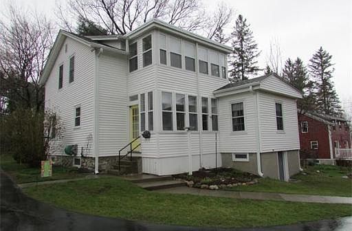 Wow! Welcome home to warm, light drenched rooms, hardwood floors on both levels, Central Air and appreciated upgrades such as updated cabinet packed Kitchen with wood parquet floor and central butcher block island, replacement windows, vinyl siding and brand new roof! The first floor of this lovely home features a formal Living Room with cozy gas stove, formal Dining, heated Sun Room, convenient first floor Bedroom with full Bath and enclosed porch. 2nd floor includes 2 Bedrooms, corner Office or possible 4th BR and Family or Play room with full Bath plus enclosed Sun Porch. Oversized 1.4 A lot has garden area with huge open field beyond, perennials galore, pear tree, blueberries etc, two car garage with storage above and storage shed. Must See!