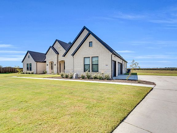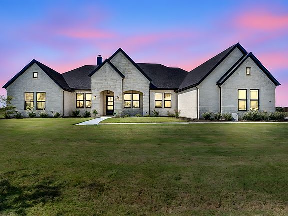 Welcome to Springside Estates in Waxahachie ISD! The Cedarcrest floorplan with upgraded Stone elevation, offers 3,112 sq. ft of thoughtfully designed living space on a premium cul-de-sac acre homesite with stunning country views. This highly sought-after layout includes 4 bedrooms, 3.5 bathrooms, a study, and a spacious game room. The home showcases upgraded white brick and white stone exterior, engineered wood flooring throughout, and upgraded carpet in the bedrooms. The family room features a vaulted ceiling with a wood-burning fireplace that extends to the ceiling and French doors leading to a 350 sq ft extended covered patio—perfect for entertaining. The gourmet kitchen boasts a large walk-in pantry, oversized island with quartz countertops, extra cabinetry, stacked white upper cabinets, and LG appliances. The luxurious main bath includes double vanities with quartz countertops, a spa-like walk-through shower, and a freestanding tub. Additional highlights include matte black plumbing and hardware, comfort-height toilets, a side-entry 3-car garage with double water heaters, blinds throughout, spray foam insulation, smart home features, full gutters, and a sprinkler system. Please ask about our Hometown hero incentive program.