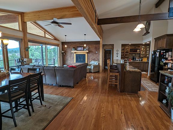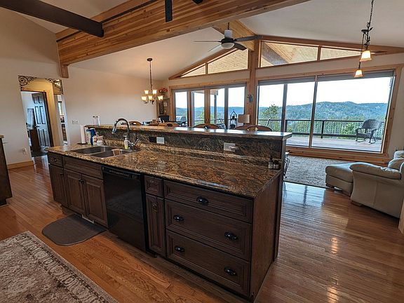 Contact Matt Klein 605-920-1341 and Greg Klein 605-920-1342 with C21 Associated Realty, Inc for your view of this amazing property. Some of the best views the Black Hills have to offer, with sights of Terry Peak, Deer Mountain, Custer Peak, Bear Butte, and Homestake viewable from the property. Unreal panoramic views from the living room overlooking the hillscape. This unique property has 4 bedrooms, 4 bathrooms, 2 car garage, abundant off-street parking, and phenomenal viewscapes abound. Main floor has vaulted ceiling with wood beam accents in the open living area and in the bedrooms. Living room has large picture windows and adorned with wood floors, fireplace, and flows into the kitchen and dining areas. Kitchen has island and sink that looks out on the view, also has a coffee bar with built in hutch. The open living room shares open dining and kitchen areas, which all have amazing views to the back deck. Primary bedroom has walkout to back deck and primary bathroom with tub and tiled shower. One of the guest bedrooms has a full bathroom and walkout to the side deck. Kitchen has access to the mud room that flows into the game room. Game room also has walkout to side yard area. Mud room also has garage access – garage can fit 2 vehicles and one stall is longer and is perfect for toy storage. Upper bedroom and attached bathroom with shower have been elegantly removdeled. This is an amazing property with phenomenal views, very desirable layouts, and ample parking.