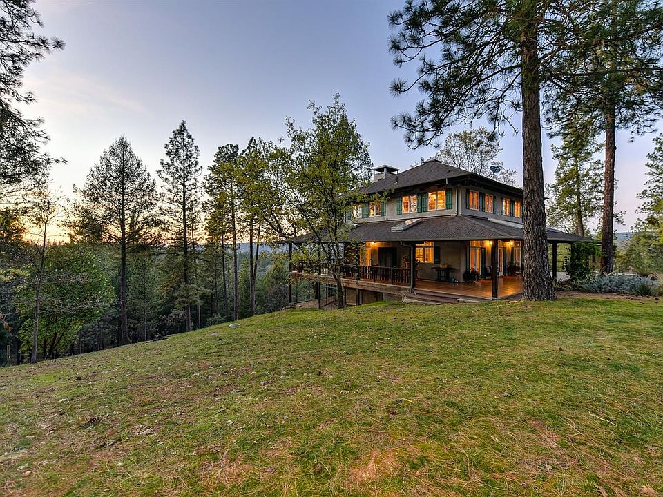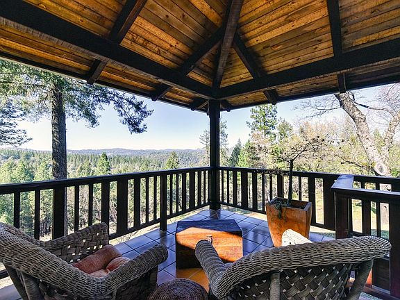 Spectacular Sierra Foothills Custom Retreat Meander the tree lined driveway thru a park-like setting that opens up to Phenomenal 250 degree views from Mt. Murphy to the Placerville night lights on 18 Acres. Built by a local high quality builder this 2312 Sq Ft Custom is minutes from Coloma Valley, Sutter's Mill, Campgrounds & the Southfork of the American River. You have ample opportunities for entertainment potential visits to the local wineries, rafting, Sac & 1.5 hours to South Lake Tahoe. The home features a grand entrance that leads you thru the open floor plan starting with the impressive living room, exposed beams & a Stone Wood burning fireplace. The Main Floor features Saltillo tile pavers, radiant heating, forced air conditioning, 7 French drs, & Pella windows views. The Gourmet Kitchen offers corian & granite counters, dining bar, Thermador gas oven & range, LG fridge & Bosch Dishwasher. This is your dream home