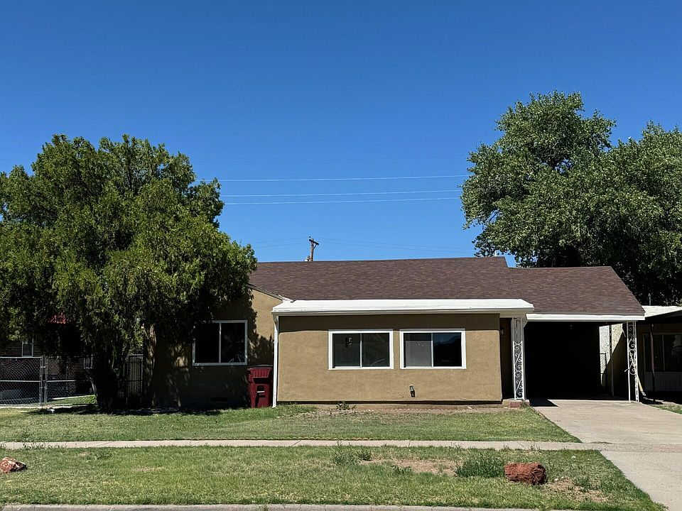 Charming Updated 2 Bedroom, 1 Bath on a double lot. Spacious Great Room and formal dining area. Kitchen has brand new cabinets, granite countertops and stainless steel appliances. Bathroom with vanity, toilet, tub and tile surrounds. New flooring throughout, new fixtures and fresh paint. Finished sunroom/entry way. 1 Car carport and backyard access through alley in back. Open patio.