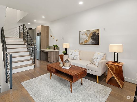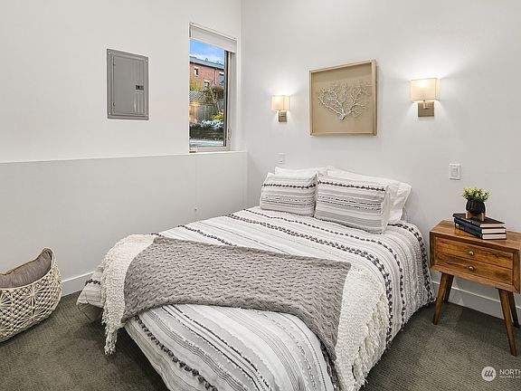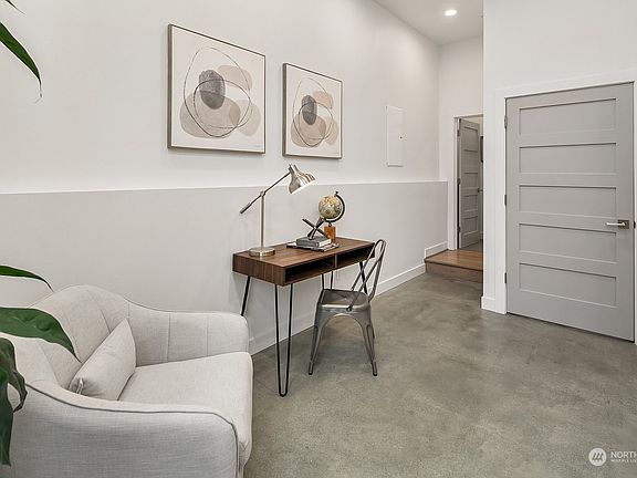 Unique Live+Work three-story 2bd, 2ba townhome centrally located in Phinney Ridge. End unit w/ front door access to neighborhood shops & restaurants and just steps from public transportation. With a walk score of 88, just about everything can be reached via foot or bike! Modern design with 10' ceiling on main floor and radiant floors, ductless mini-splits providing for efficient year round heating & cooling. Rooftop deck w/ stunning views of Green Lake to the east and Puget Sound, Olympic mountain range to the west. Bath and bedroom on main as well as on upper floor allows for flexibility of use. Dedicated convenient off-street parking spot in private area behind building. No HOA, no rental cap. SELLER TO CREDIT $5K TO BUYERS CLOSING COSTS!