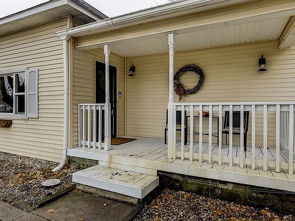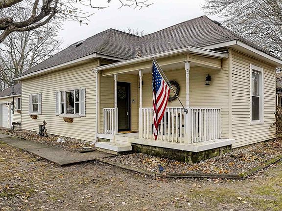 Cozy on Carter Street! Quaint and on a corner lot...this is the small-town American dream. Offering a slower pace, work-life balance and quality education, you will love living in Russiaville, Indiana. Old Glory greets you as you step up the covered front porch with classic spindle posts. Step into the tiled entryway and into your home sweet home with three bedrooms, one bathroom, 1,243 square feet, two-car attached garages and all located on an easy-to-maintain lot in Western Schools. Home features a long Living Room that could also be used as a Great Room. A pass through window connects the Living Room to the fully updated Kitchen with all new appliances! Kitchen offers eat-in area and sliding glass door to the covered back deck with cedar posts and new roof, backyard and fire pit area. Updates include the full bathroom, kitchen, stainless steel appliances and new front door. Roof and windows less than ten years young. Shiplap, subway tile, butcher block countertops, wood tones in the floors and a neutral paint palette give this home an updated farmhouse feel with old-school charm and modern amenities. Celebrate your cozy Christmas here! Let's get you moved in before the holidays!