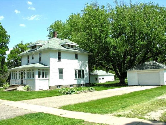 One of St. Ansgar's Finest Classical Homes! Enjoy the huge corner, paved, 120'x180' shaded lot with 4-5 car garage storage, concrete patio, wood deck, enclosed front porch, permanent siding, 3 Bedrooms, 3 Baths, hot water heat, C.A., beautiful wood floors and woodwork, & most appliances are included.