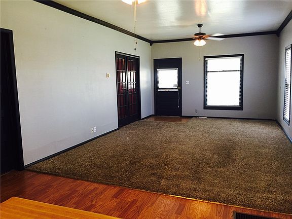 This home is just steps away from the school, fenced in back yard, large living room, open to kitchen, new flooring in most of home. Utility room off of Kitchen and a bonus room just off the back porch. Blue storage building is reserved but may be negotiated. Ceiling fans and new paint.
