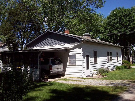 Cute & cozy 2 bedroom 1 bath home on 3 lots. Home has partial basement, attached carport & storage building. All appliances included