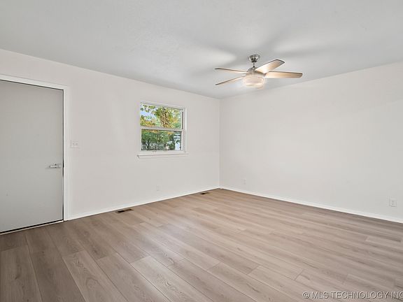Inviting remodeled home with beautiful quartz counters, new backsplash & new stainless-steel appliances. Popular Open floor plan with fresh neutral paint. Crisp & clean. New luxury vinyl flooring throughout with a renovated bathroom that offers quartz vanity & fresh tile. Light-up no-fog mirror + stylish finishes throughout. New 30-year roof! New concrete driveway, a fully fenced backyard & wooden deck. Convenient location near shopping & various amazing restaurants. Owasso schools are close by. Walk to the Redbud District/Park - An event-oriented green space. This Gem of a home is a must-see nestled in a terrific location.