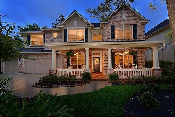 Amazing home in Alden Bridge w/gorgeous pool, rock waterfall & lush landscaping! Charming front porch, stunning hardwood & Travertine floors, soaring ceilings, neutral paint colors & abundant windows make this home light & bright. Island kitchen w/stainless appliances, granite counters w/tile backsplash & plenty of cabinet space opens to breakfast rm; built-in wine storage w/wine cooler off kitchen; den w/gaslog FP; both formals; private study; master suite down; gamerm & 4 generous bdrms up.