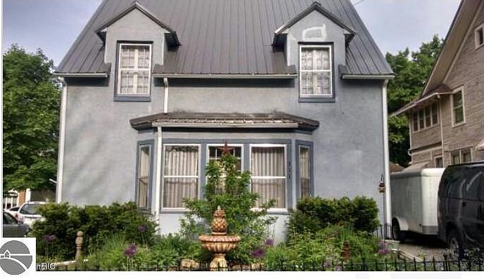 Beautiful English Cottage style home. French Bay windows meet you as you pull into the driveway tucked behind a beautiful flower garden. As you enter you see hardwood floors running throughout the home, and all North and South facing windows have been upgraded. The dining room is open concept with the kitchen and the master bedroom invites you in from there to see a large space as well as a full bath. The upper level has three more bedrooms and a full bath with tub. In the ceiling you notice pull down attic steps which lead you to a 12 foot tall space superb for storage. Plumbing in this home as been partially updated. There is a 5 year old high efficiency furnace and a one year old on demand high efficiency water heater as well. Metal roof is less than on year old and has seamless gutters