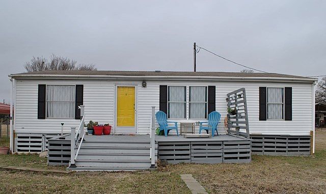 Cute double wide mobile home on just over one acre. Great investment or rental opportunity in a highly desirable part of the Texas Hill Country. Located just off US Hwy 290, only minutes from area wineries and a 15 minute drive to Fredericksburg. Enjoy the breeze from the spacious decks. Carport, and outbuildings provide additional storage. Separate storage room with bath could be additional living space. Plenty of room for your projects and pets on this double lot. Stonewall water system, and on site septic system. Portion of property in flood plain. Hard to find a property at this price!