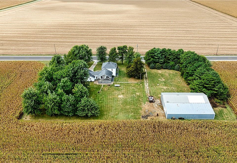 Your country farmhouse awaits in the highly sought-after Cerro Gordo School District! Set on over 1.5 acres with peaceful views of surrounding corn and bean fields, this home offers both charm and space. The attached three-car garage provides plenty of room for vehicles and storage, and the large metal outbuilding with partial concrete floors is perfect for hobbies, projects, or additional storage needs. Inside, the main floor features a bedroom and full bath, along with multiple flex rooms that could be used as extra living space, a home office, or even an additional bedroom. Upstairs, you’ll find three more bedrooms and another full bath. The galley-style kitchen opens to the dining and living areas and flows seamlessly to the covered deck through sliding doors — ideal for entertaining or simply enjoying the country views. A spacious mudroom/laundry room conveniently connects the house and garage. Recent updates include fresh paint throughout, new carpet in the front living room, an upgraded laundry room, new light fixtures, refreshed landscaping, and a septic system that was pumped in August 2025. Both A/C units and one furnace were replaced in 2021, the well pump was replaced in 2022, and the propane line was replaced in 2022. With its perfect mix of country charm and modern updates, this move-in ready home is truly a must-see!