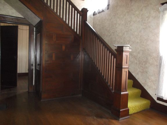 Large home featuring 4 bedrooms, 1.5 bathrooms with plenty of original charm; hardwoods throughout, fireplace in living area and awesome foyer entry with beautiful staircase welcomes guests! Windows are newer, central air is a plus and awesome 2.5 detached garage could be utilized for any project. The value is here at only $49,900. Call today for you own tour.