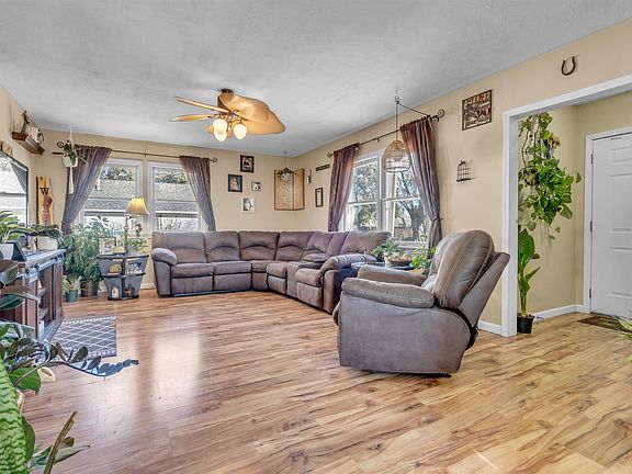 Immaculately maintained ranch home located in the heart of Moundridge featuring mature trees and a HUGE detached shop/garage. Main floor features an open layout with floods of natural light. Updated decor and fresh paint with two main floor bedrooms with a private bathroom. Patio door off the dining room open to the updated kitchen. Basement boasts large recreational space, wet bar/second kitchen area, large bedroom AND bonus room being used as the master with walk-in closet & on-suite bathroom featuring washer and dryer. Enjoy the huge shop all year round with central heat and air. This home is very well maintained and move in ready. Ask about purchasing with 0% down.