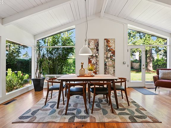 Cool Ranch! 1956 MCM in Hazelwood, very close to Glendoveer. Single level living at its best including an updated kitchen with SS appliances, vaulted ceilings, gleaming wood floors, 3 bedrooms, 2 fireplaces and vintage wood-paneled family room that could be used as a primary bedroom. Ready for the summer heat with central AC! Fresh interior paint and new carpet in family room. The vast .29 acre yard with towering, mature trees and fire pit is fully fenced and offers lots of possibilities for outdoor living, gardening, entertaining and playing fetch with your 4-legged fur baby. 130th PL is a quiet, non-through street. Easy access to shopping, MAX and highways. This is the MCM you've been waiting for! [Home Energy Score = 1. HES Report at https://rpt.greenbuildingregistry.com/hes/OR10238644]