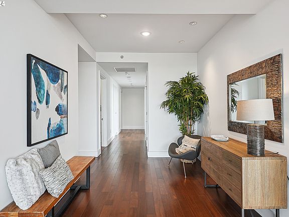 Discover urban sophistication in a prime Pearl District location. This 2-bed, 2-bath condo with a separate office/bonus room offers 2197-sqft of luxury living with remote-controlled electric shades throughout. Enjoy stylish wood flooring, a gas fireplace with a sleek stone surround, and a gourmet kitchen with top-of-the-line appliances including a wine refrigerator. Separate laundry room features Miele washer and dryer. East-facing balcony with a gas hook-up and amazing views of both Mount Hood and Mount St. Helens provide the perfect backdrop for entertaining. LEED Platinum-certified, it combines sustainability with style. The generously sized primary bedroom features an alcove for a desk or make-up station and a spacious walk-in closet. A highlight of the luxurious bathroom is the new bidet toilet. Secure garage with two assigned parking spaces - one with an EV charger - and 24-hour concierge/security services ensure convenience and peace of mind. Experience the pinnacle of city living in this meticulously designed residence.