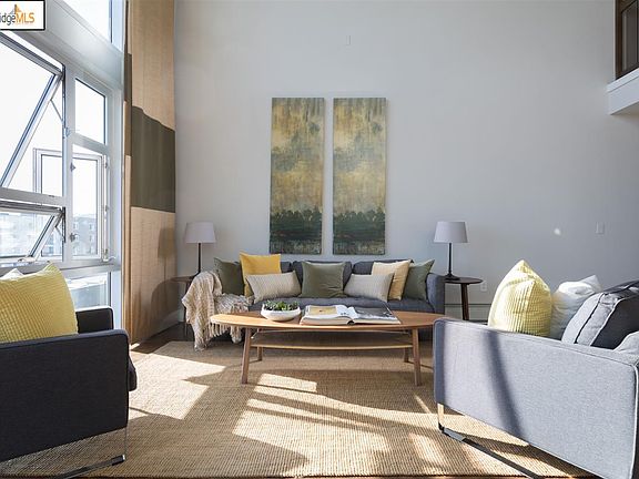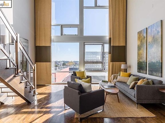 Enticing pricing! Soak in the light and views that wash over this sophisticated Sierra loft. This chic, modern 2-bed, 2-bath unit features an open-concept kitchen, living and dining area facing floor-to-18-foot-ceiling windows, and a wide-open mezzanine space that lends itself equally well to working from home or binge-watching the latest can't-miss series. The large master bedroom on the second level features generously sized closets, a balcony facing the inner courtyard. Delight in a stroll on the Bay Trail along the estuary to Jack London Square, visit the farmer's Market on Sundays, enjoy an outdoor dinner with beautiful tastes and views from Belcampo or Forge. Find yourself a hop, skip and jump away from the best of San Francisco and Oakland with easy access to freeway, BART and ferry options. HOA amenities include a swimming pool, sauna, 24/7 concierge, exercise center/gym, gated parking, and conference room.