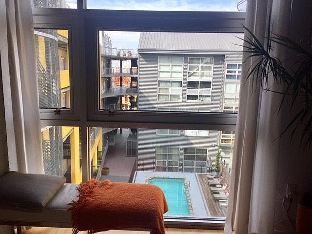 Interior and quiet facing unit with 1 office/den/guest room. There are so many upgrades such Murphy Bed, custom built kitchen island, designer lighting, shelving, stainless steel kitchen, hardwood floors and noise barrier windows in bedroom. Conveniently situated with quick and easy access to 880, BART, restaurants, shops, movie theater, Yoshi's, Jack London Square, Old Oakland, Chinatown, Uptown, and more... Take full advantage of Sierra's many amenities, including: heated lap pool, fitness center, sauna, media room with billiard & TV, business center, concierge and 24/7 security. Conveniently situated with quick and easy access to 880, BART, restaurants, shops, movie theater, Yoshi's, Jack London Square, Old Oakland, Chinatown, Uptown, and more... Take full advantage of Sierra's many amenities, including: heated lap pool, fitness center, sauna, media room with billiard & TV, business center, concierge and 24/7 security. Landlords pay HOA dues which include front desk service, gym, pool, sauna, business center and garage. 1 year lease.