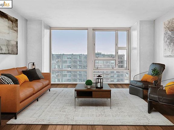 This light-filled, southern facing 1 bedroom, 1 bath apartment is one of 227 units at The Sierra at Jack London Square, a premier, artistically designed condominium complex in the midst of Oakland's thriving Jack London Square. The building itself features luxury amenities like secure on-site parking, 24/7 concierge, a state of the art fitness center, and an outdoor heated pool, sauna and sundeck, among others. Unit 832 offers a flowing open floor plan that includes a living room, kitchen, as well as a cozy bedroom and bathroom. The condo elegantly fuses indigenous wood and stone to create a natural yet modern feel. It also boasts gleaming hardwood floors as well as the latest in lighting. High ceilings and massive windows make the space feel even more open and airy. The cement and exposed pipe finishes throughout pay homage to the area's past. The Sierra is easily accessible to Lake Merritt + 12th St/Oakland City Center BART, Amtrak, Jack London Ferry, as well as HWY 880 + 580