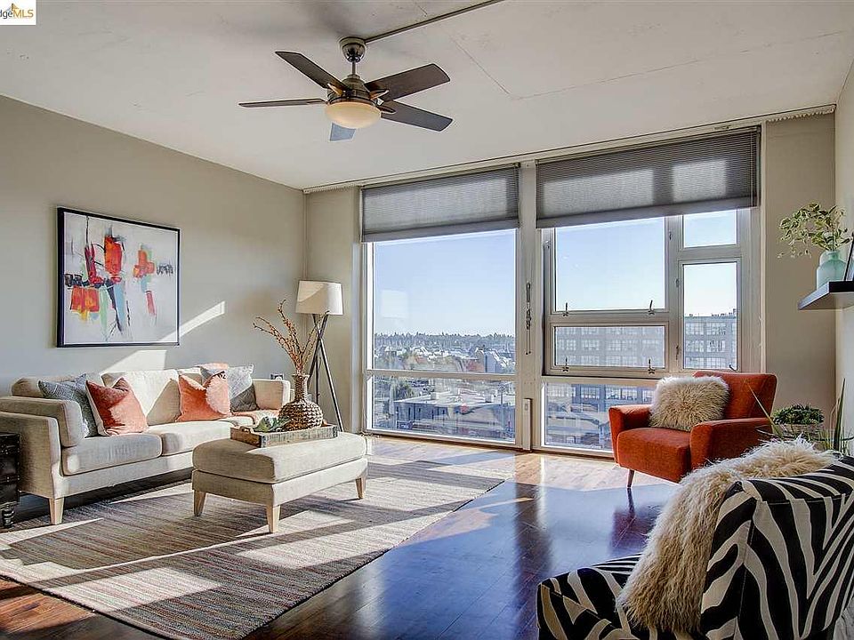 Get ready to experience the good life in this hip one bedroom condo in the heart of Oakland's Jack London Square. The open layout with high ceilings, huge windows, and hardwood floors offers the perfect space for casual entertaining. The unit includes one parking space and a 3'x6' storage locker. HOA amenities include; gym, pool, sauna, business center, meeting room, entertainment room, bike storage room, and 24-hour front desk/security. The Sierra at Jack London Square is a premier Oakland property with enviable amenities and convenient commute options.