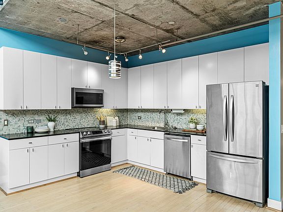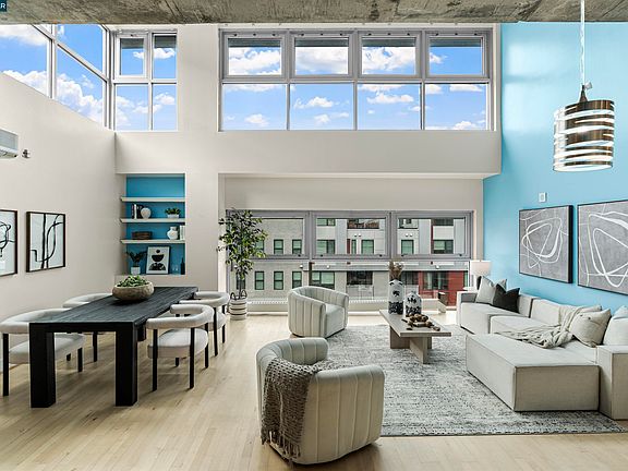 Welcome to 311 Oak St. #837, a modern penthouse-style condo in the desirable Sierra complex in Jack London Square. This spacious 2-story 1-bedroom, 1.5-bathroom end unit boasts over 1,391 square feet of modern living space with soaring vaulted ceilings and floor-to-ceiling windows that flood the home with natural light. Built in 2003, this corner unit also sits on the top floor with no neighbors above; creating the ideal condo living environment. Enjoy breathtaking views from the generously sized bedroom with an en-suite bath and bonus space. The contemporary open kitchen features sleek black Quartz countertops, Samsung stainless steel appliances, and a full mosaic backsplash. Residents enjoy top-notch amenities, including 24 hour attended front security desk, a resort style swimming pool, sauna, a two-level fitness center, conference/business rooms, and a media center/club room. The unit comes with 1 garage parking spot. Just steps from the estuary, indulge in dining, shopping, and the vibrant Farmer’s Market, with favorites like Scotts’ Seafood, Yoshi’s, and Plank nearby. With easy access to the Oakland Airport, 880 Freeway, BART, the SF Ferry, and Amtrak, this location offers unbeatable convenience.