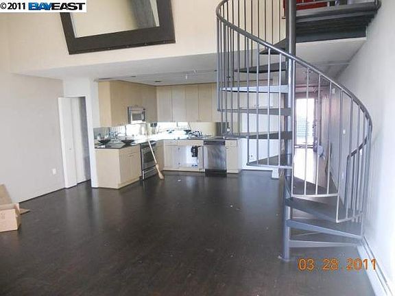 Luxury penthouse unit facing San Francisco Bay. 18 feet ceiling loft with floor-to-ceiling windows and custom drapes. Very well kept unit, dark hardwood floor, stainless steel appliances. This unit has a large patio deck. Located near BART, freeways, shops, & restaurants.