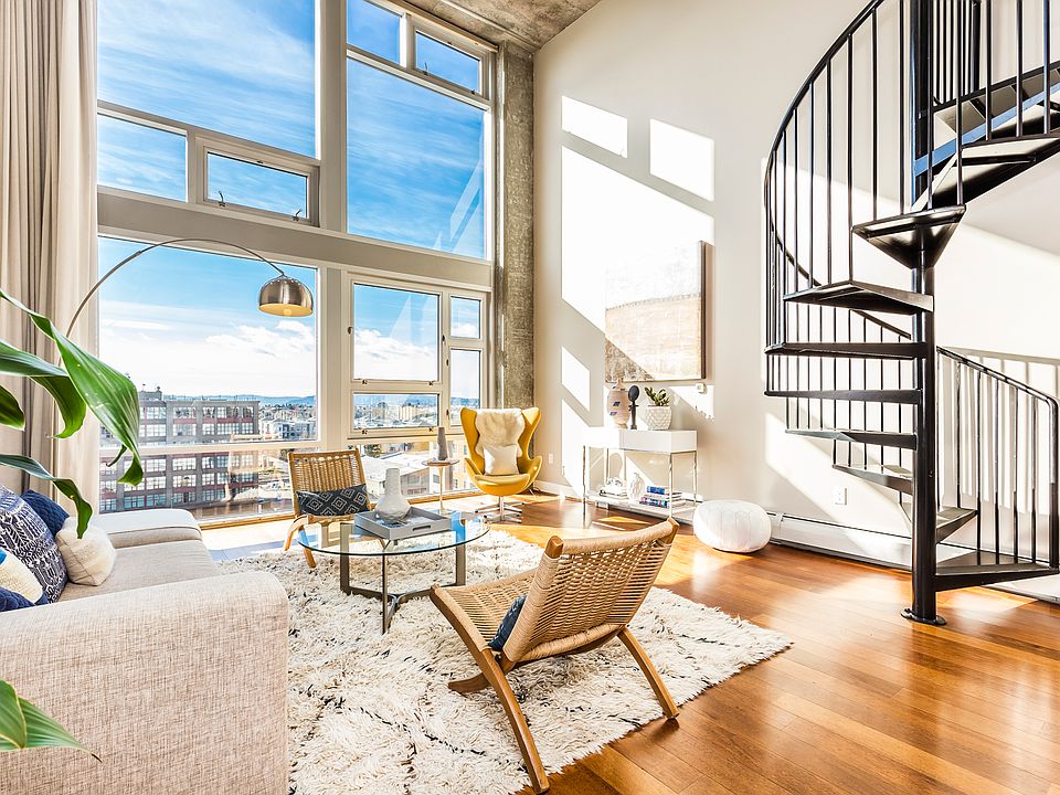Urban chic meets sophisticated modern in this stunning 2 bedroom, 2 bath, 1,334 SF (per tax records) penthouse loft in the heart of Oakland's Jack London Square. Enjoy expansive water, city, and partial Bay Bridge/San Francisco views from wall-to-wall, floor-to-ceiling, southwest facing living room windows. Top floor location and double height ceilings allow for a natural light drenched interior highlighting the architectural intricacies of this penthouse loft. The first level entrance leads to a fully enclosed bedroom with new carpets, an adjacent full bath featuring tiled floors, and a laundry closet with washer/dryer. Follow the hardwood hallway into the newly renovated kitchen with recessed LED lighting, new cabinetry with tiled backsplash, new appliances, granite counters and oversized island perfect for in-kitchen dining. A spiral staircase leads to the second level master bedroom with ample closet space, a full master bath and an extra-large interior facing private en-suite balcony. Interior comfort is ensured with in-unit heating and air conditioning and cars are secured with 2 deeded, side-by-side underground garage parking spaces. Designed by architect Kava Massih, 311 Oak St., better known as The Sierra, is one of Jack London's premier luxury condominium complexes. Built in 2003 and consisting of 224 luxury units, The Sierra boasts a one of a kind lap pool, sauna, gym, entertainment/club room, communal deck/BBQ and lounge areas, and a front desk concierge. The Jack London Square Warehouse/Waterfront District is one of Oakland's most established and trendy neighborhoods. Hip restaurants, cafes and coffee roasters, wineries, music venues and farmer markets abound. Nearby public transit includes BART, SF/Oakland Ferry, Amtrak and easy freeway access in all commuting directions.