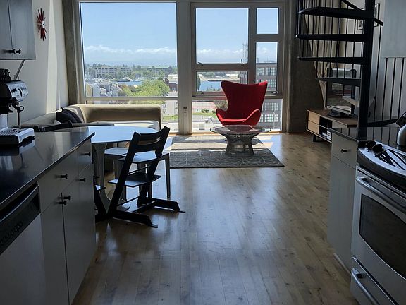 Paradise at The Sierra! Enjoy soaring 18 ft. floor-to-ceiling windows that frame picturesque clear blue skies and views of the Oakland/Alameda estuary. This 2 bed 2 bath Penthouse Loft with newly refinished hardwood floors is the place to call home while experiencing all that Jack London has to offer. On the main level is a bright second bedroom, full bath, living/dining area and kitchen with walk-in pantry. On the second level is the master bedroom complete w/ ensuite and access to the gorgeous private patio; entertain guests, BBQ, grow a lovely herb garden - the possibilities are countless. Amenities include a doorman, heated pool, sauna, clubhouse, gym, air conditioning, plus 2 parking spaces. Enjoy easy commutes with access to BART, ferry to SF, B shuttle through downtown Oakland, plus an endless array of trendy cafes, eateries and wineries within walking distance. Don't miss out on this unique opportunity to obtain urban living in one of the Bay Area's most desirable communities!