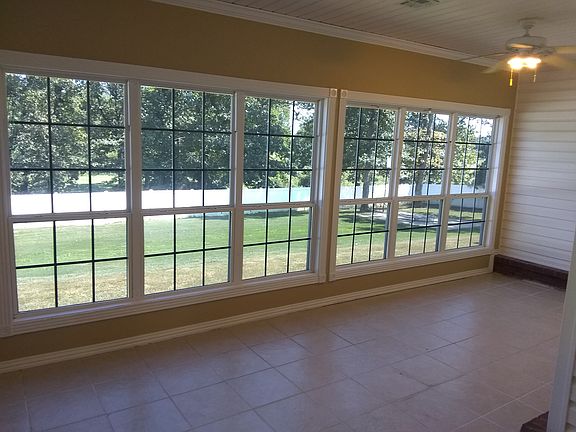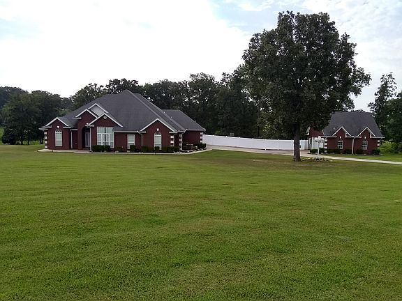 Absolutely gorgeous home sitting on 3 m/l beautiful landscaped acres. This home features living room with cathedral ceiling and tall ceilings thru out house. Master bedroom has gas log fireplace and large walk in closet. Master bath has a tile walk in shower and whirlpool tub. Each bedroom has it's own private full bath. Also, it has a beautiful sun room for hobbies or just relaxing having the feel of being outdoors yet staying cool or warm. The detached building is approximately 1330 sq ft and has heat & air system and full bath that can serve as a studio apartment, shop or garage. If you're afraid of storms this house also has a storm cellar for your protection. This rare find has it all.