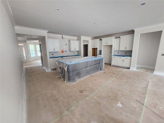 New construction Craftsman inspired home featuring 4 bedrooms, 3.5 bathrooms, and an open floor plan. The main level includes a foyer, formal dining room, and a kitchen with upgraded cabinetry, quartz countertops, built-in chimney hood, gas cooktop, and built-in microwave/oven combo. The kitchen opens to an informal dining area and a family room with a shiplap fireplace. Covered back patio provides outdoor living space.