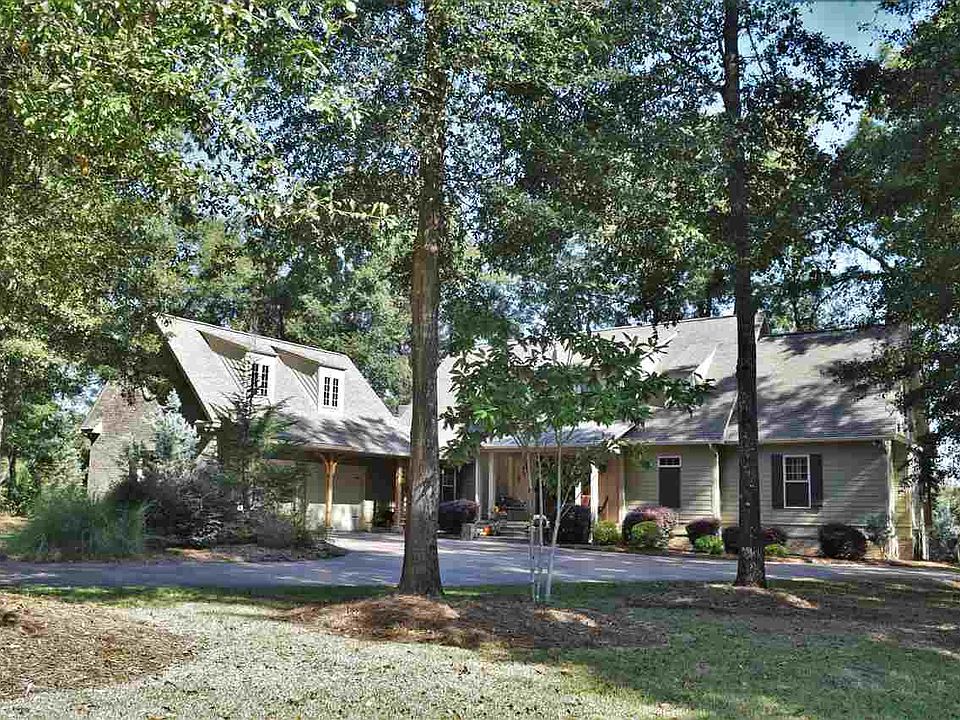 Almost 2 ac heavily wooded waterfront lot! Porches galore! Custom home offers open & airy plan w/ custom trim throughout. Master suite has own private porch & 14x10 walk-in closet w/custom shelving. 14x25 screened porch w/ wood burning fireplace, partially finished 2325 sq ft basement plumbed for bath & bar, 16x35 workshop. 29x24 unfinished upstairs bonus room perfect for attic. Upstairs loft for 2nd family room. Extras include laundry chute, brick firepit, treehouse, coffered ceilings & bench seat dining.