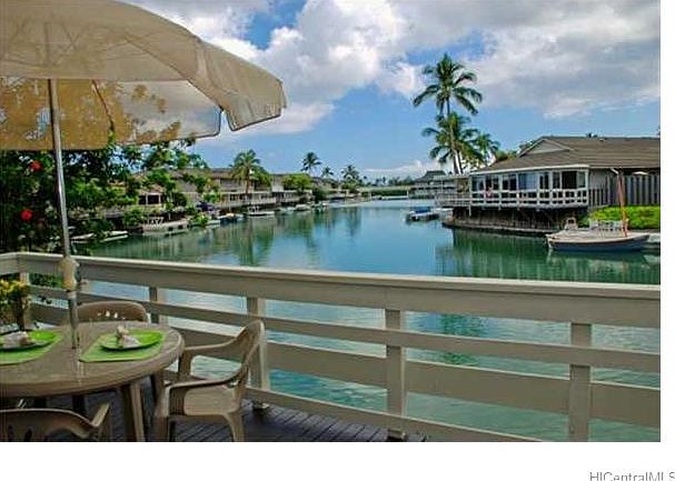 Waterfront Kuapa Isle-large floorplan-remodeled 2008-brand new corian counters & appliances-views of marina from kitchen/dining/living/upstairs master BR-2 car carport-two units per bldg-side yard-lanai overlooking marina for dining/entertaining-rm for boatdock-pool-clubhouse-security guard-well managed/maintained-only waterfront for sale-virtual tour-1st showings next Sunday 11/2