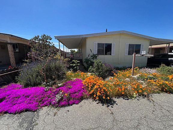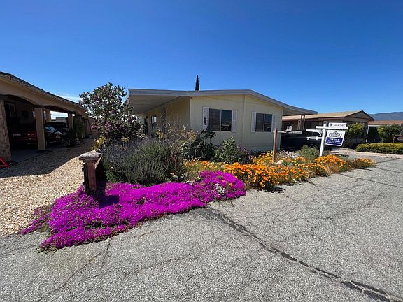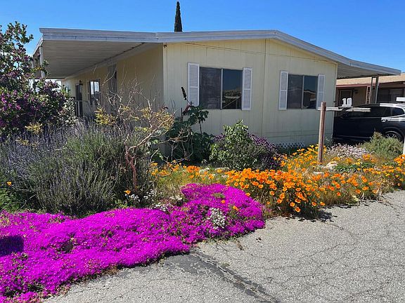 Come see the Super Blooms at this Spacious Double Wide Mobile Home in Almond Acres Senior Mobile Home Park, a quiet 55+ Senior park with drought resistant landscaping. 3 Bedrooms, 2 Baths in 1,440 square feet. Newer roof. Large Covered Patio enters into a large living room, dining room with fireplace, built in China Cabinet, Kitchen with newer gas cooktop and large pantry. Large primary bedroom and bathroom with sunken tub and separate shower. Two other large bedrooms and bath on opposite side. Tandem covered driveway enters into the Laundry Room and includes an additional space on one side, plus a large storage shed.