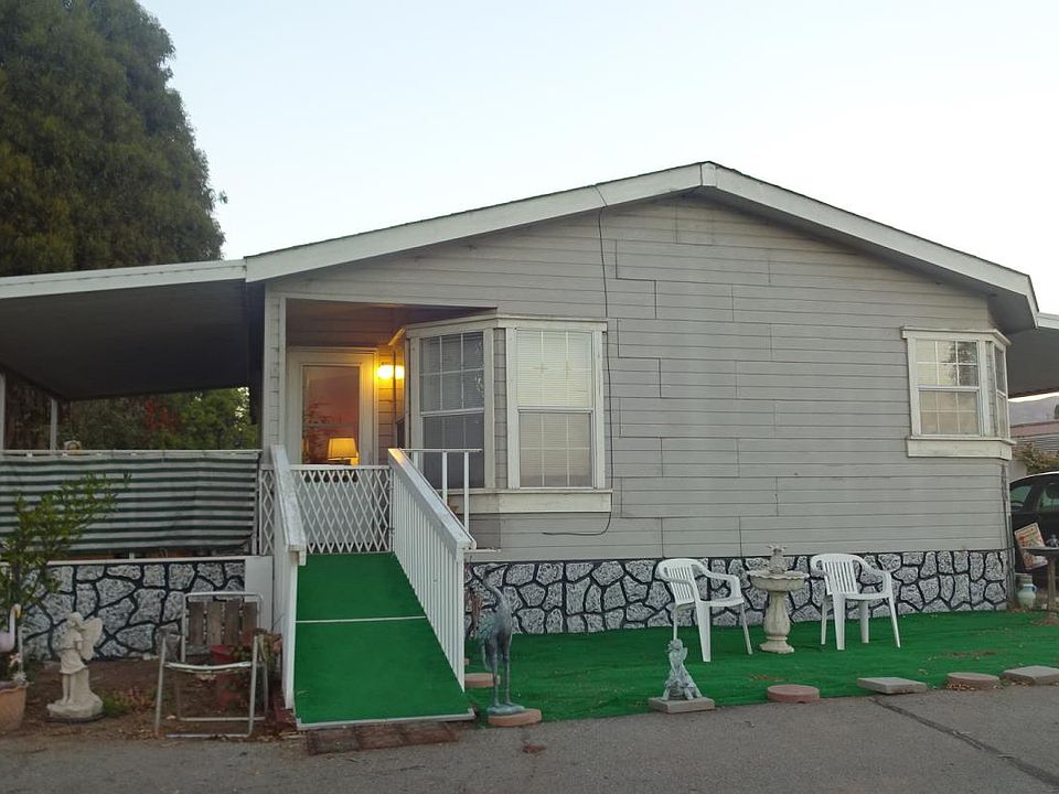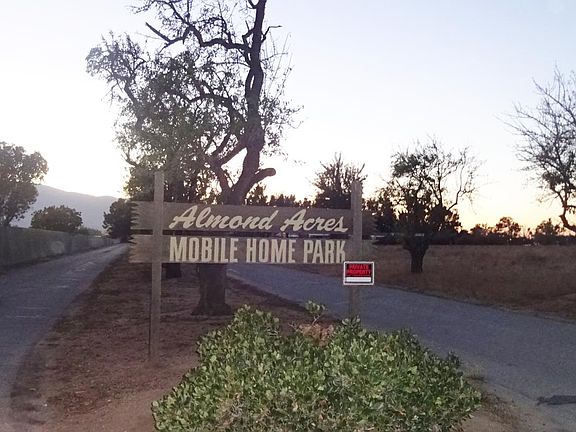 This well maintained home is in a quiet park in the Almond Acre Orchard. It is situated on the largest corner end lot across from the Eucalyptus trees. It is an adult park which requires one of the buyers to be 55 years or older.