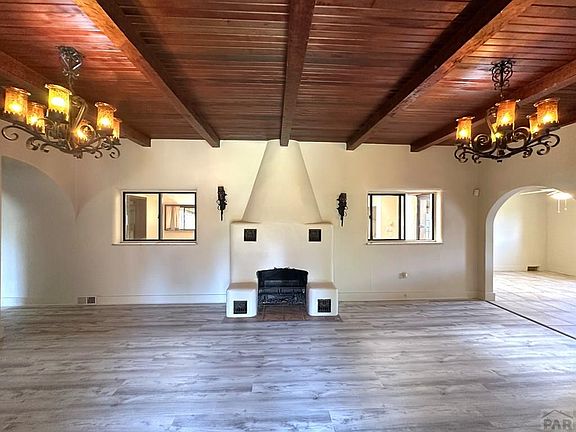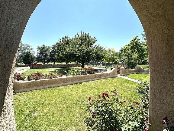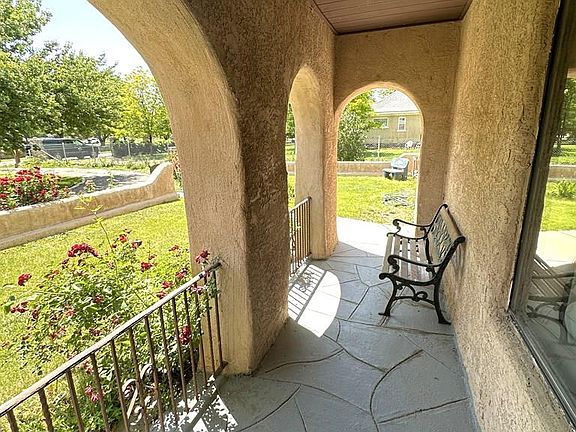 Discover true Pueblo living in this charming adobe-style home, perfectly positioned in the sought-after west of City Park area. You'll appreciate its distinctive character, from the mature apricot tree in the front yard to the vibrant rose bushes and plush, well-maintained lawn that surrounds the property. Inside, you'll find a warm and welcoming atmosphere. The living room features a strikingly large woodburning fireplace, beautiful wood-beam ceilings complete with chandeliers original to the home, and built in little library shelves and cabinets. This 2-bedroom, 1-bathroom home has been refreshed with new paint and durable LVP flooring. The spacious eat-in kitchen offers ample storage, and is great for both everyday living and entertaining. Adding to its appeal is a bright enclosed sunroom, complete with skylights and ceiling fans, providing a wonderful space to relax year-round. For ultimate convenience, the laundry room is located on the main floor. There is also an AG well (hasn't been used in years but is available on the property).