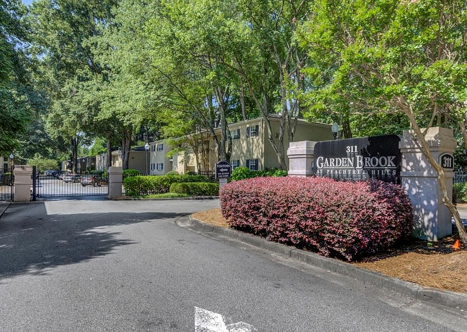 Amazing Opportunity in Wonderful Gated Complex in the heart of Peachtree Hills. Renovated END UNIT. Kitchen has new cabinetry, leathered granite and stainless appliances. Large living space, dining space and a private patio. 2 bedrooms with renovated marble bath and laundry closet with washer and dryer. Stepless unit on 1st floor. HOA takes care of exterior maintenance and roofs were replaced in 2017.