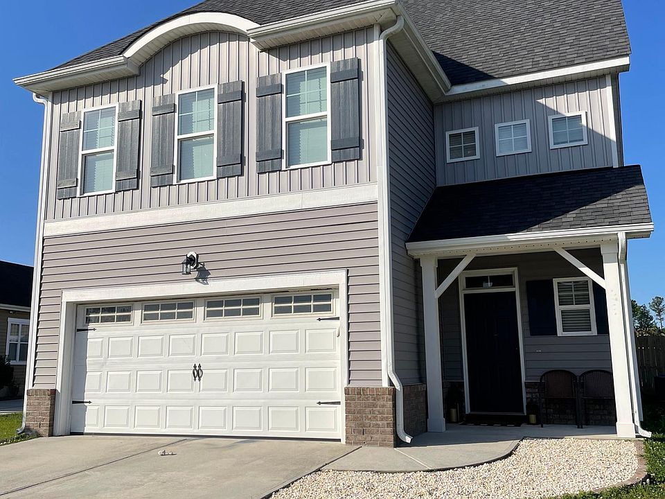 Amazing 1920 sq ft. 3 bedroom, 2.5 bathroom corner house in highly desired neighborhood in Sneads Ferry. Short drive to back gate of Lejeune, Stone Bay, and New River and 5 min drive to N. Topsail Beach. Updated kitchen with other updated features. Expansive primary bedroom with 16ft ceilings and huge WIC and spacious 2nd and 3rd bedrooms with close guest bath. Laundry upstairs with washer/dryer included with rental. Unfinished third floor with plenty of space for storage. Huge fenced in backyard. Access to Community pool. $2,000/month rent. $2,000 security deposit required. This property is managed by a responsible landlord, Available: 7/15/25. Tenant pays all utilities (electric, water, sewer, trash), small dogs allowed, first month's rent due as security deposit. NO smoking. Washer/dryer included, available 7/15/25.