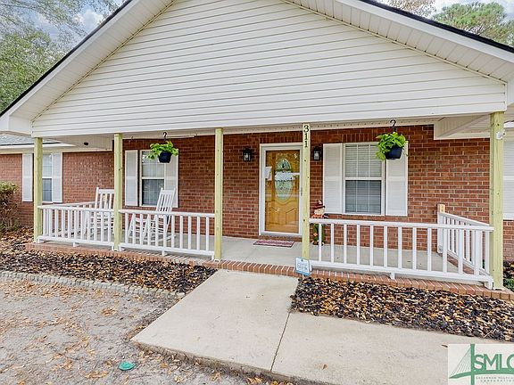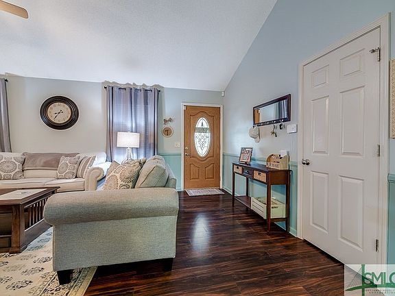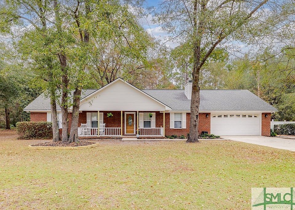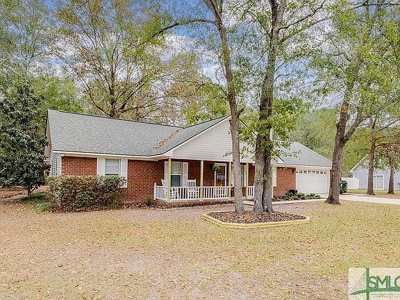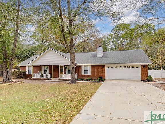 This stunning 3-bedroom, 2-bathroom residence boasts an impressive 1697 square feet of living space, with cathedral and tray ceilings that add grandeur to every corner. The home features a spacious living room with a cozy fireplace and built-in bookcase, an open-concept kitchen and dining area, a convenient laundry room, and a garage with a dedicated storage room. Step outside to enjoy the tranquility of the large covered front porch or the uncovered patio, both offering breathtaking views of the surrounding wooded area on .43 acres. Close to shopping, schools, I-95, Gulfstream, Pooler, and the airport.