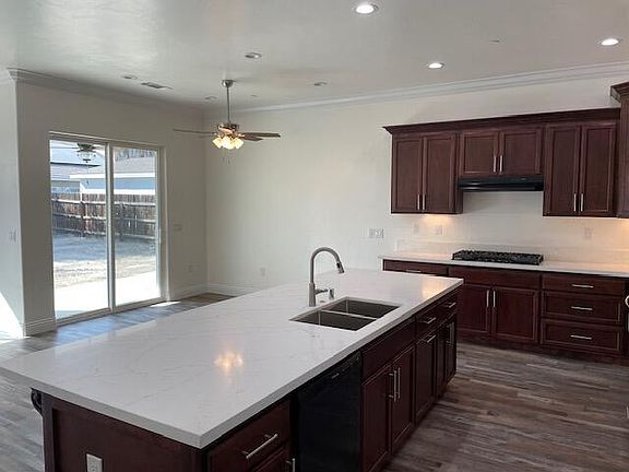 side of Tulare in a desirable neighborhood. This 3 bedroom-2 bathroom home is located near schools, shopping, parks, etc. This beautifully designed home is a must see!!! This home also includes custom cabinetry in kitchen area, bathrooms, and laundry room. Home comes with 10 foot ceilings in the entryway, dining area, kitchen and main bedroom also with crown molding . The home also features an open floor plan with plenty of room to host family gatherings. The main bedroom has a walk in closet, tiled walk in shower with a soaking bathtub to relax. This home comes with a fully finished garage with recessed LED lighting. The garage comes with a bonus automatic roll up door leading to the back yard with an extended area with plenty of space to let your imagination take over. Full landscaped front yard with automatic sprinkler system. This home also comes with a brand new solar system PAID IN FULL BY SELLER. The home also has a 50 year presidential composition roof. This home has extra upgrades throughout you have to see to appreciate. Home is move in ready and a must see!!! Call today to set up appointment and make this your forever home.