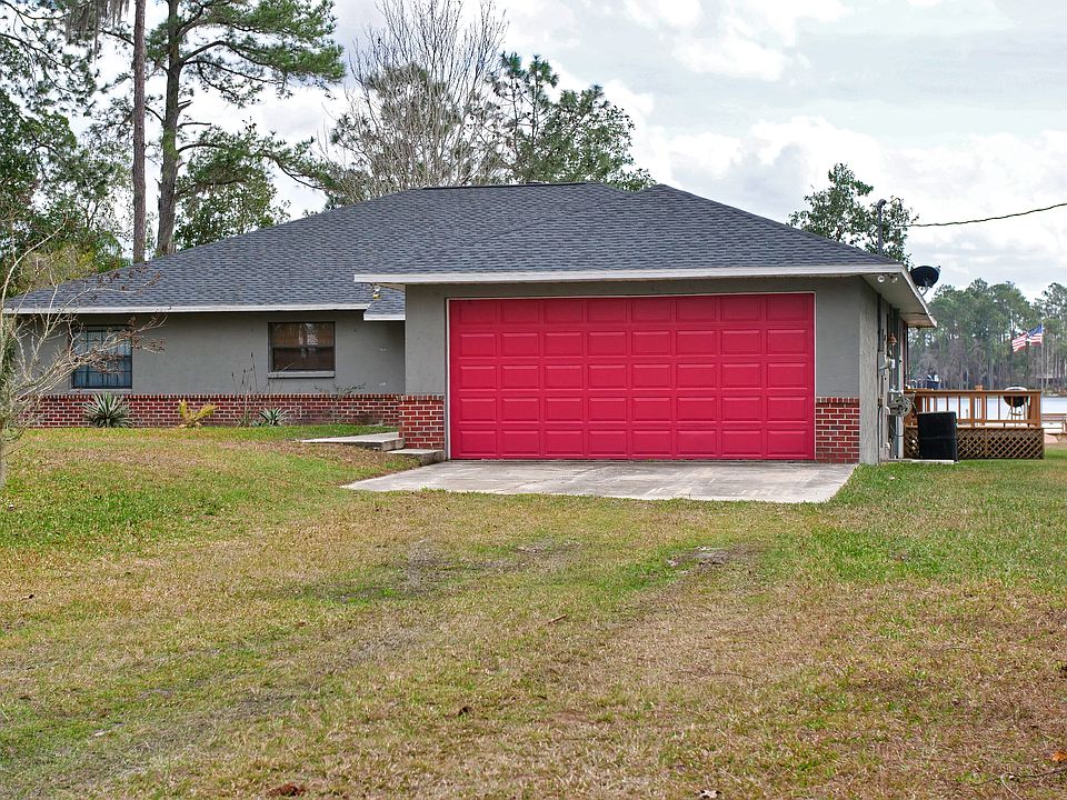 Fall in love with this unique, custom built home on Riley Lake! Enjoy the view from your screened porch or swim, fish and boat on the lake which has always plenty of clear water. The home opens into a great room with fireplace, very spacious island kitchen with loads of cabinets, and vaulted ceilings. Split floor plan and new carpeting in all bedrooms. Every room in the house has an awesome view of the lake, and all rooms open unto the screened porch. Large Master bedroom, bath has double vanity and Jacuzzi. Brand new roof has 50 year architectural shingles. Large lot, storage shed, outdoor deck, fire pit, dock for you boat or fishing. Only a short drive to Gainesville, Jacksonville, Palatka and Ocala.