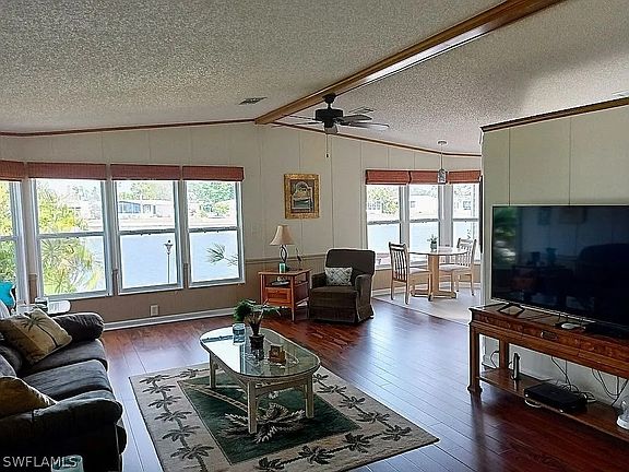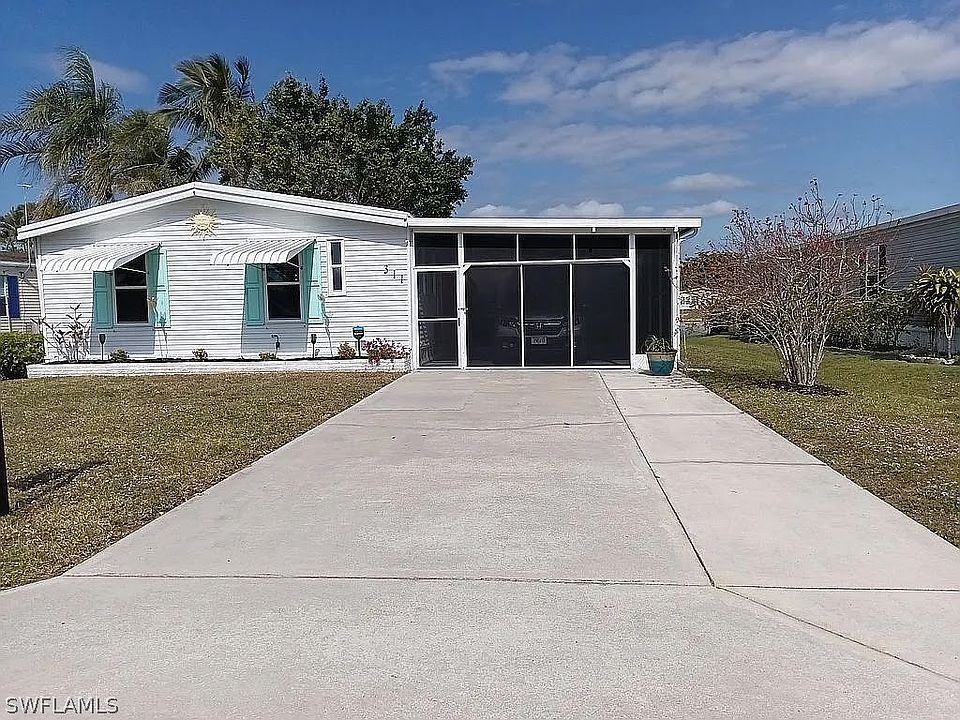 GORGEOUS WATERFRONT HOME RENOVATED - HUGE NEW ADDITION SETS THIS ONE APART FROM THE REST! You own your land (NO co-op). Low HOA $198 annually. This Riverwood Estates 55+ Community home has been beautifully renovated. The updated kitchen includes Stainless Steel Appliances and expansive counter space with beautiful wood plank vinyl flooring. Both bathrooms are updated. The open floor plan has vaulted ceilings and natural light that overlooks the lake. Enjoy the spectacular 400 sqft air-conditioned Florida Room addition, with double patio doors and lots of windows which overlook the lake. The two sets of patio doors lead out to the large private patio with a perfect setting for birdwatching, fishing, or simply enjoying the water. Partially furnished with newer A/C (4 years) and new HWH. A much-desired 2-CAR Screened-In CARPORT transitioned into a quasi-garage. The exterior has maintenance-free siding and the yard is beautifully maintained with mature landscaping. Optional membership in the community pool and social club. The community offers a boat ramp for boating and kayaking on Henderson Creek, just 20 minutes to the Gulf by boat! A short drive to Naples and Marco Island beaches.