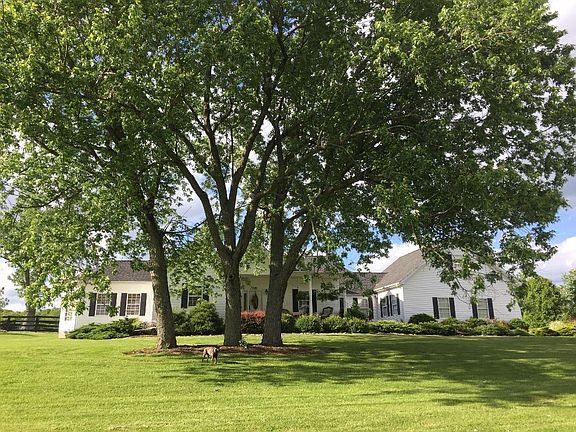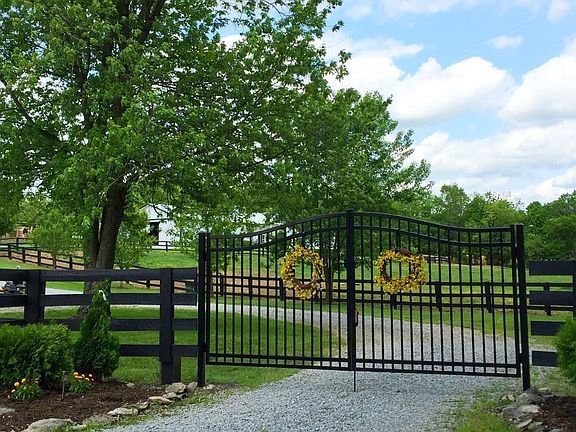 Total horse farm package. 2 barns, 24 stalls wide aisle in main barn and shed for ample storage of hay and equipment. Wash rack and roughed in area for office and bathroom. Two larger fields for hay and grazing plus 2 paddocks. Modern home with 3 bedrooms including 2 master bedrooms and 3 full baths and newly finished 800 sq.ft. den on rear of house. 3,200 sq.ft. per PVA. Open floor plan in living area with eat in kitchen, dining room and den. Located in rural Bourbon County on quiet county rd.