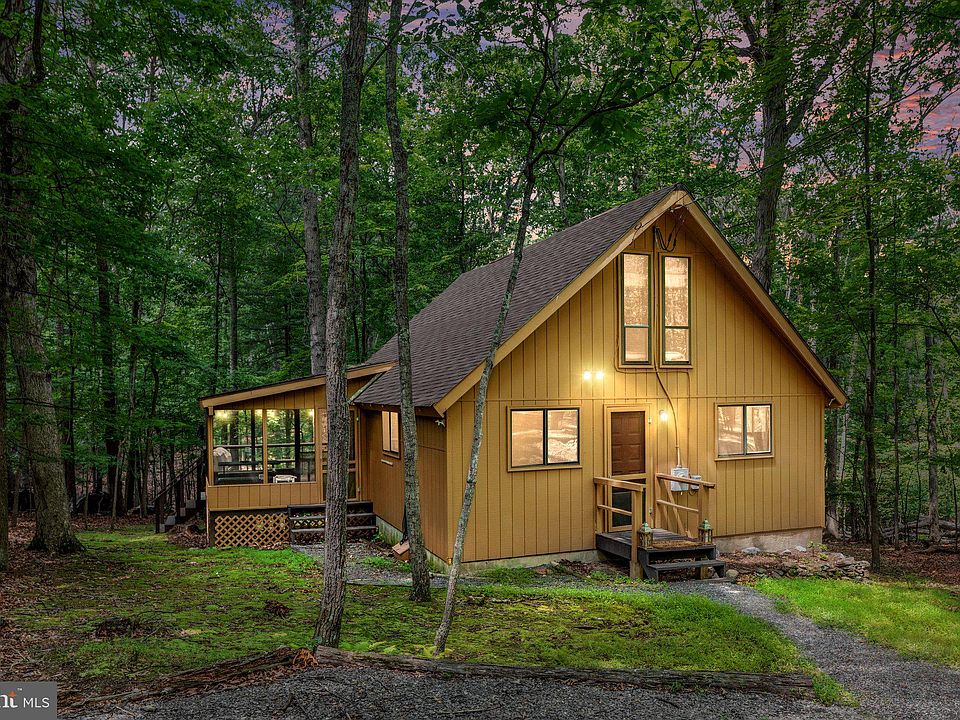 Escape to your own cozy chalet nestled on 1.36 acres wooded acres. Enjoy spectacular views from the 2-story wall of NEW WINDOWS in the Great Room. Snuggle up with a great book and relax in front of the stone facing wood burning fireplace. The main level features one bedroom and one full bathroom, while the upper level loft provides additional sleeping space. The screened porch provides an ideal retreat, allowing you to enjoy the fresh air without worrying about insects or the weather. It's the perfect place to sip your morning coffee, or spend time with family and friends. Gaze at the stars from the large private deck which spans the length of the chalet. Furnishings convey with the home. Class B FAMILY Club membership is available. Annual club dues are $1475. Private Club amenities include: Indoor Sports Center (racquetball, indoor pool, gym, aerobics room, laundry facilities, sauna, steam room, whirlpool, volleyball, indoor & outdoor tennis, indoor & outdoor basketball, shuffleboard, pickleball) , 2 Outdoor Pools, Clubhouse, Club Room, Baseball Field, Playground, Fishing Ponds. Other onsite amenities include: The Clubhouse Grille & Pub and the Sleepy Creek Spa & Salon. Don't miss this incredible opportunity to own your own piece of West Virginia. Schedule your showing today.