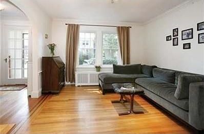 Chestnut Hill. This splendid 9 room, 3.5 bath residence offers over 2,300 sq ft of elegant living space. Living room with fireplace, built-in shelving and an archway opening to sun-filled dining room. Kitchen is sleek and has doors leading to wonderful deck overlooking yard. 5 bedrooms include lovely master bedroom with walk-in closet. Bright 2012 Architect designed 3rd floor with 2 bedrooms, full bath. Finished basement with au pair accommodations. Hardwood floors. Central air..grt yard